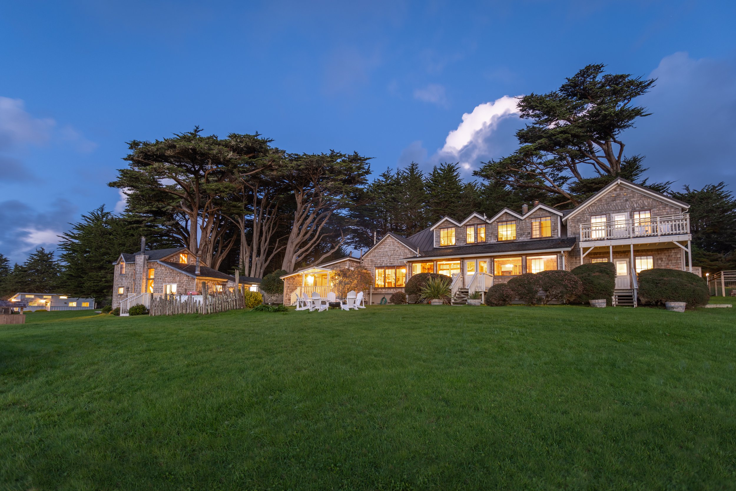 This picturesque historic retreat on the rugged Northern California Coast, is just minutes from Mendocino and near several popular California state parks. Our expansive property features a main house and three charming cottages, offering ample space for gatherings of any kind. With spacious decks, lush lawns adorned with Adirondack chairs, and breathtaking ocean views, it's the perfect setting for weddings, family reunions, or year-round group getaways. Escape the hustle and bustle as you relax in our coastal oasis, where every corner invites serenity and connection. Plan your unforgettable coastal experience with us today.